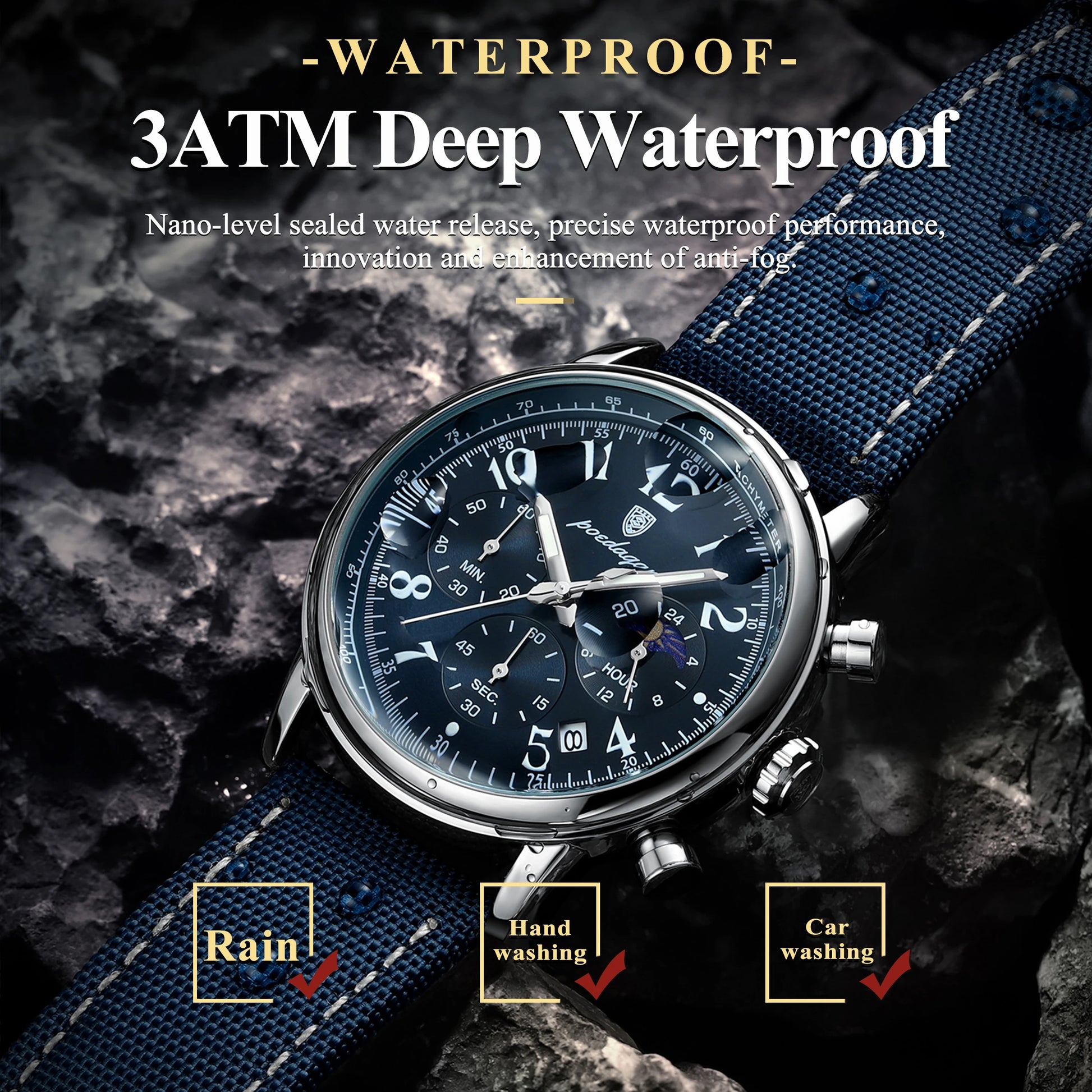 POEDAGAR 808 Men’s Quartz Watch – Moon Phase, Luminous Dial
